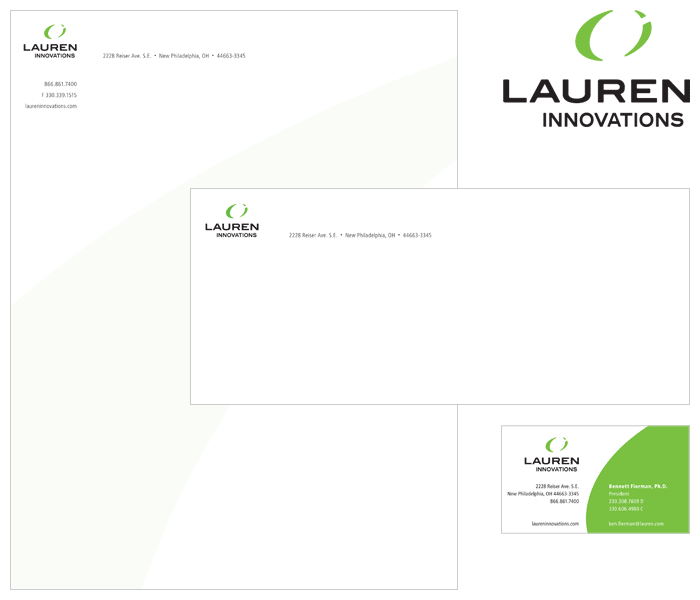 A subdivision of Lauren International, Lauren Innovations develops products that streamline processes and operations within an organization. First up was to develop their corporate identity. The name by itself didn’t really offer an obvious graphic direction, but the purpose of the company did. They offer products directed at a safer, healthier and more secure world. It is a resourceful company. The brand essence can be translated in one word – spirited. This is a trait that can be taken in a number of ways. But they saw it as a positive one that is representative of being flexible and progressive.